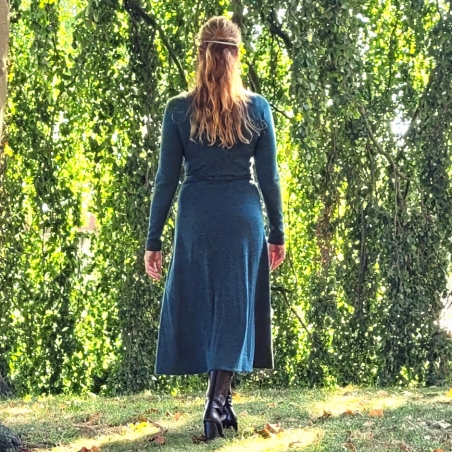 Deze wikkeljurk lang met klokmodel (halverwege de schenen bij 1.70M) is er nog in 2 kleuren!